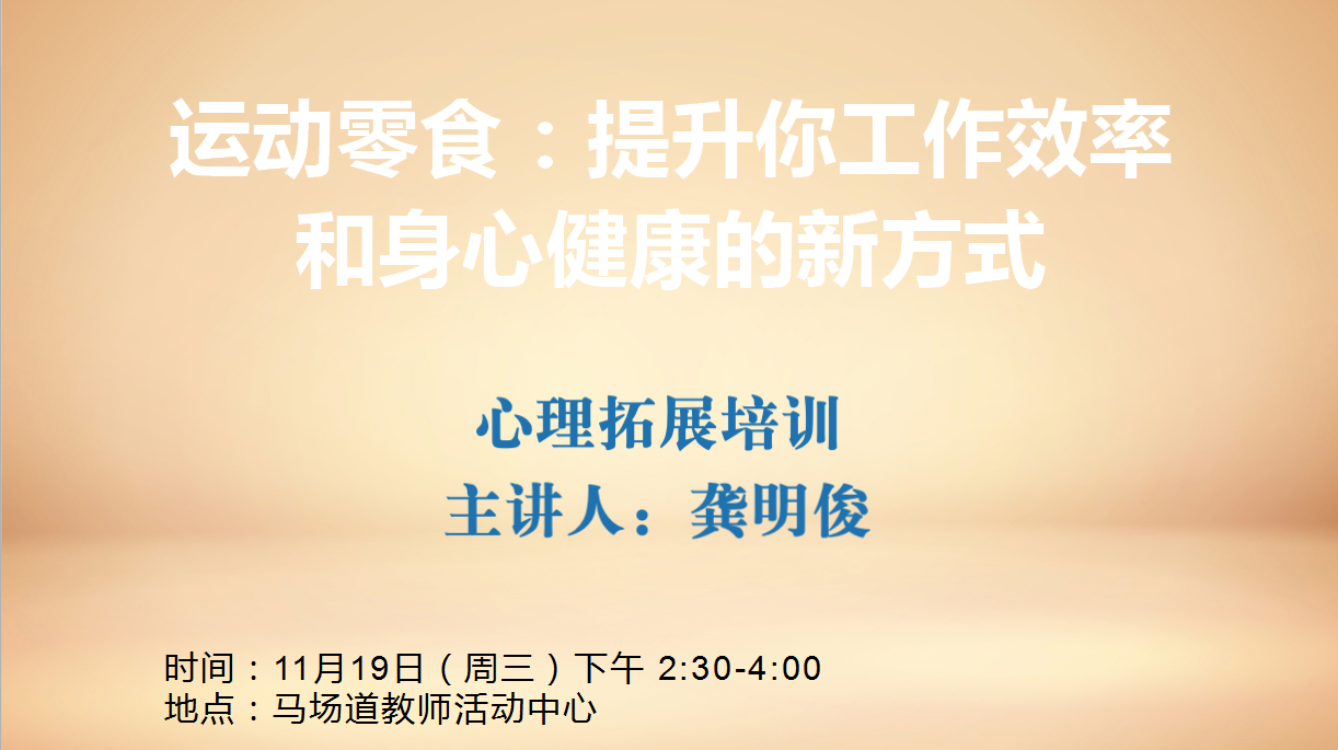 讲座预告:“运动零食:提升你工作效率和身心健康的新方式” 心理拓展