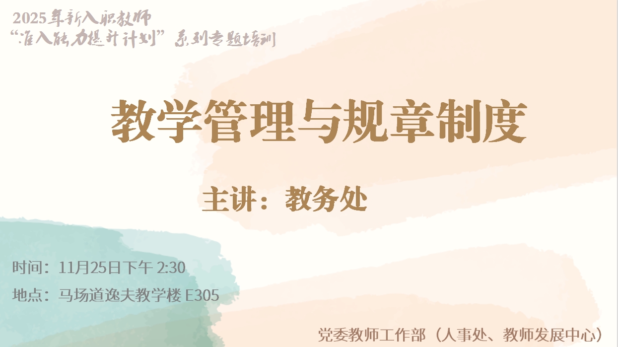 讲座预告:新教工“准入能力提升计划”专题--教学管理与规章制度