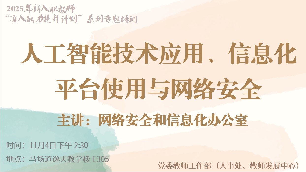 讲座预告:新教工“准入能力提升计划”专题--人工智能技术应用、信息化平台使用与网络安全