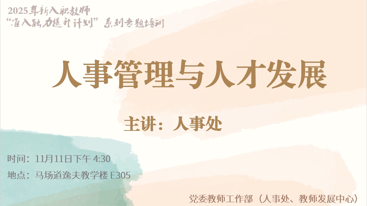 讲座预告:新教工“准入能力提升计划”专题--教学管理与人才发展