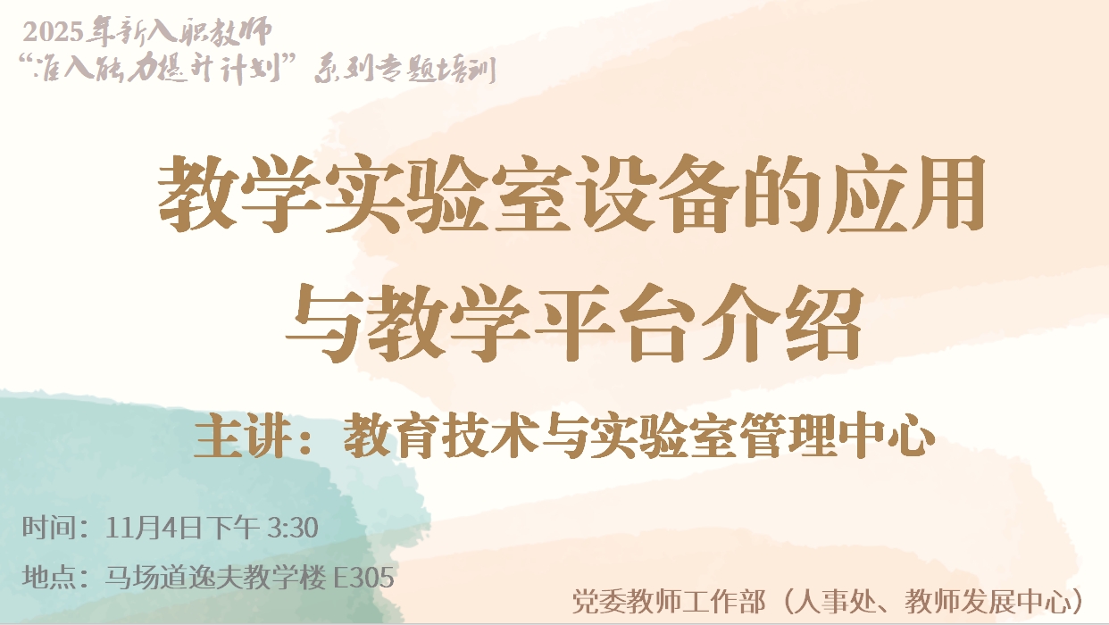讲座预告:新教工“准入能力提升计划”专题--教学实验室设备的应用与教学平台介绍